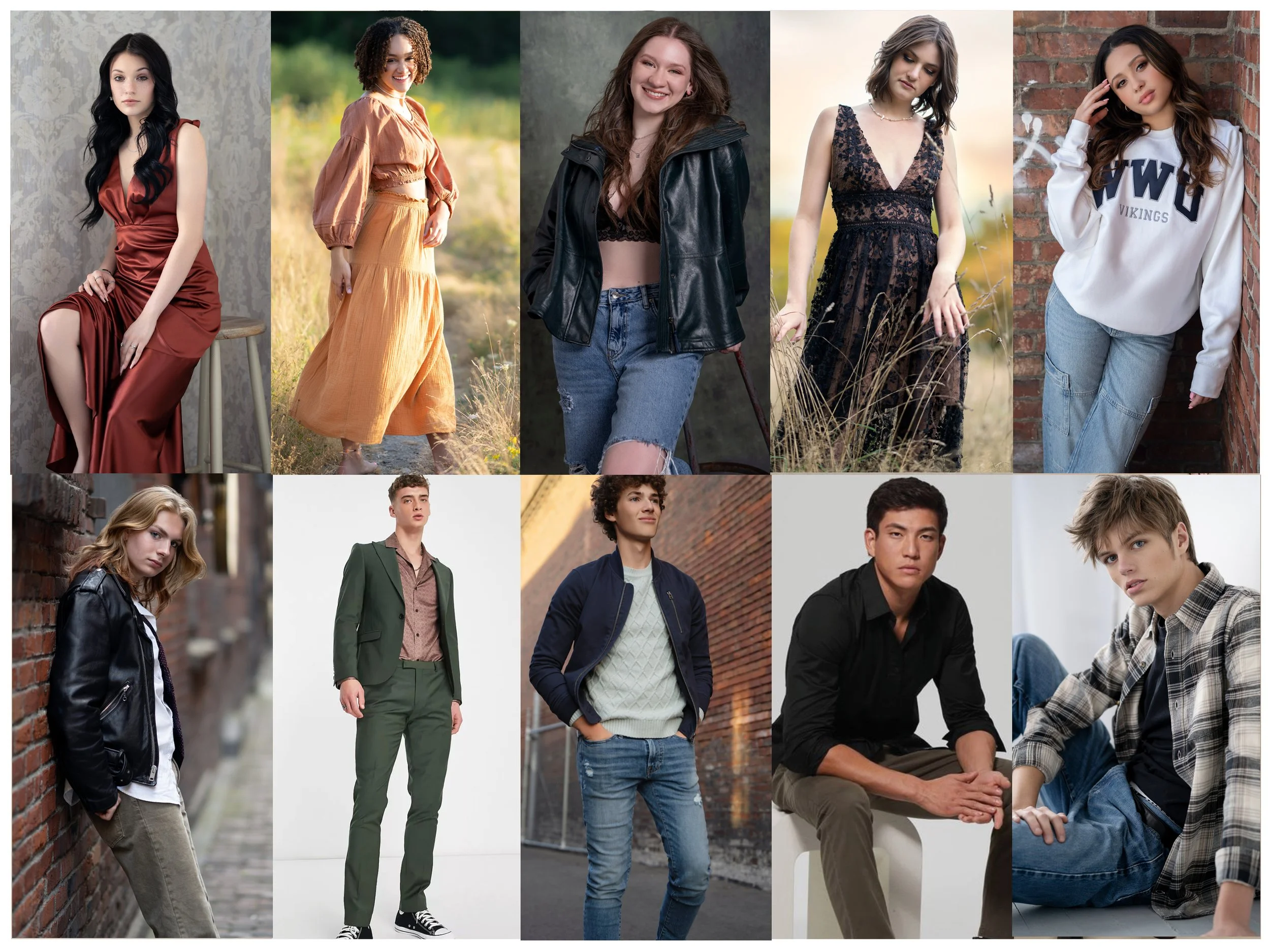 - Include appropriate shoes for all your wardrobe selections so we’re covered for pull-back shots.